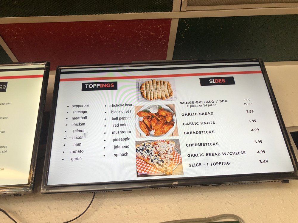 Toppings: Pepperoni, Sausage, Ham, Chicken, Bacon, Meat Ball, Salami, Mushrooms, Bell Pepper, Red Onion, Black Olives, Spinach, Artichokes, Sun Dried Tomatoes, Pineapple, Garlic, Basil, Diced Tomatoes, Sliced Tomatoes, Jalapenos, Feta Cheese, Extra Cheese, Alfredo Sauce, Pepperoncini