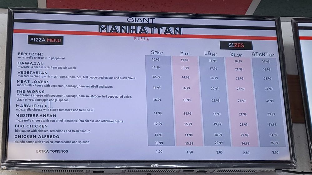 Indulge in the delicious offerings of Giant Manhattan Pizza, located in Anaheim, CA. This Italian eatery not only serves gigantic pizzas with a variety of toppings but also offers sandwiches and vegan options. The menu includes extras like buffalo wings, garlic knots, and a selection of beverages. Customers praise the generous portion sizes and affordable prices, making it a go-to spot for large groups and parties. The friendly service and quick turnaround time for orders ensure a pleasant dining experience. With glowing reviews from patrons raving about the flavorful pizzas and accommodating staff, Giant Manhattan Pizza is a must-visit for those craving New York style thin-crust pizza. Don't miss out on the opportunity to enjoy a satisfying meal at this hidden gem in South Anaheim/Garden Grove area.